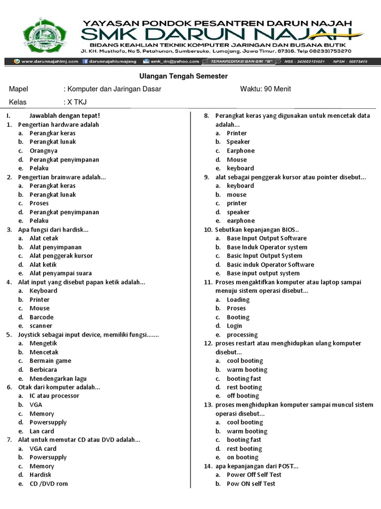 Soal komputer dan jaringan dasar kelas 10 semester 1. Check spelling or type a new query. We did not find results for: Maybe you would like to learn more about one of these?